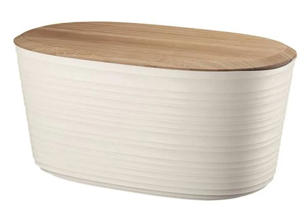 Guzzini Bread Bin With Bamboo Breadboard Lid Milky White