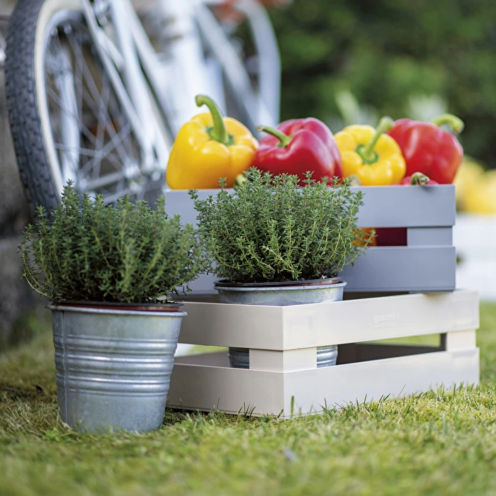 A system of acrylic boxes with the typical shape of traditional wooden fruit boxes. Stackable and modular, lightweight, easily cleaned because they do not absorb liquids of any kind, and decidedly versatile. Dishwasher safe.