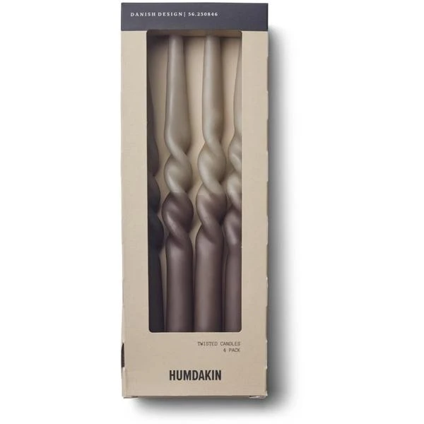 Twisted Paraffin Candle 4 Pack by Humdakin. Two tone dipped and twisted by hand. Come boxed. Enjoy the coziness all fall with these hand twisted candles in the humdakin tones. Burn time 9hrs. OEKO-TEX cotton wick.