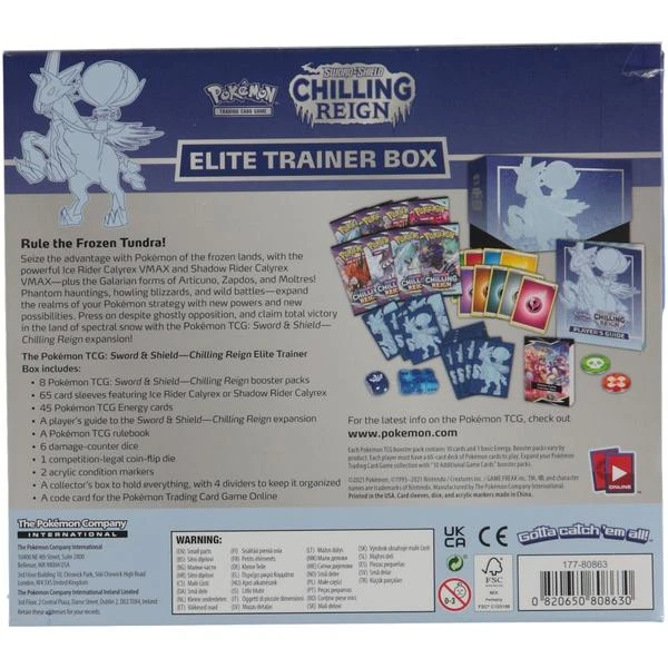 The elite trainer box includes, 8 booster packs, 65 card sleeves, 45 energy cards, players guide, damage counters, coin flip die, condition markers, storage box and a code card to unlock online content.